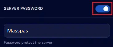 4. В таблице «Пароль сервера» включите соответствующую настройку и введите желаемый пароль.