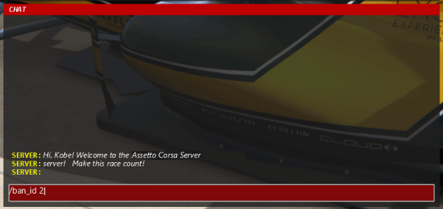 Чтобы забанить игрока на сервере Assetto Corsa, войдите в систему как администратор и введите команду /ban_id.
