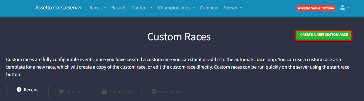 Чтобы создать собственную гонку, вам потребуется получить доступ к веб-панели серверов Assetto Corsa.
