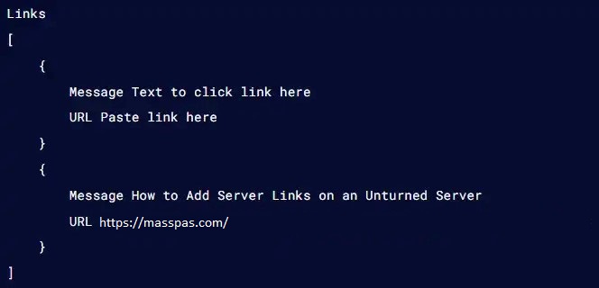 Ссылки на серверах Unturned предоставляют удобный доступ к внешним ресурсам или сообществам, связанным с сервером. Они часто включают ссылки на серверы Discord, форумы сообщества или социальные сети, где игроки могут общаться друг с другом вне игры. Предлагая ссылки на серверы, администраторы серверов способствуют взаимодействию сообщества, облегчают общение и предоставляют дополнительные ресурсы для игроков, позволяющие им общаться и сотрудничать за пределами игрового мира.