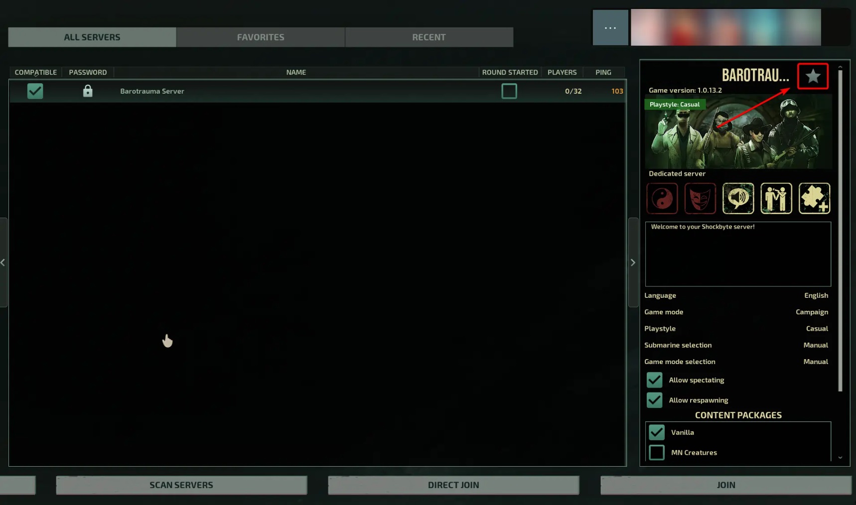 1. Если вы хотите добавить свой сервер в список избранных, нажмите на значок звездочки.