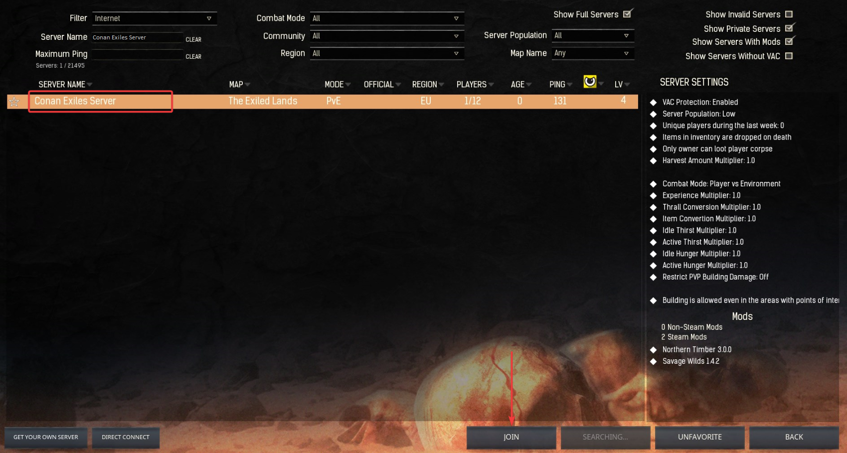 Как только вы настроите сервер Conan Exiles так, как вам нужно, вы готовы к игре. Вы можете присоединиться к серверу напрямую, используя его IP-адрес, или через браузер избранного Steam.