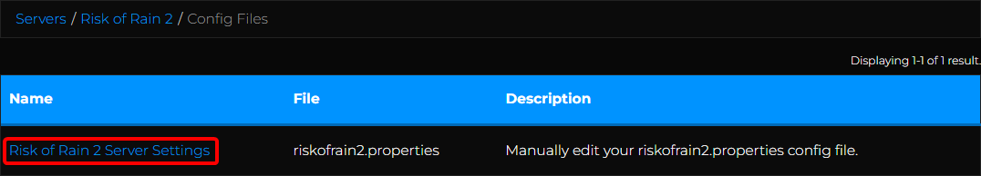 - Нажмите «Настройки сервера Risk of Rain 2» .